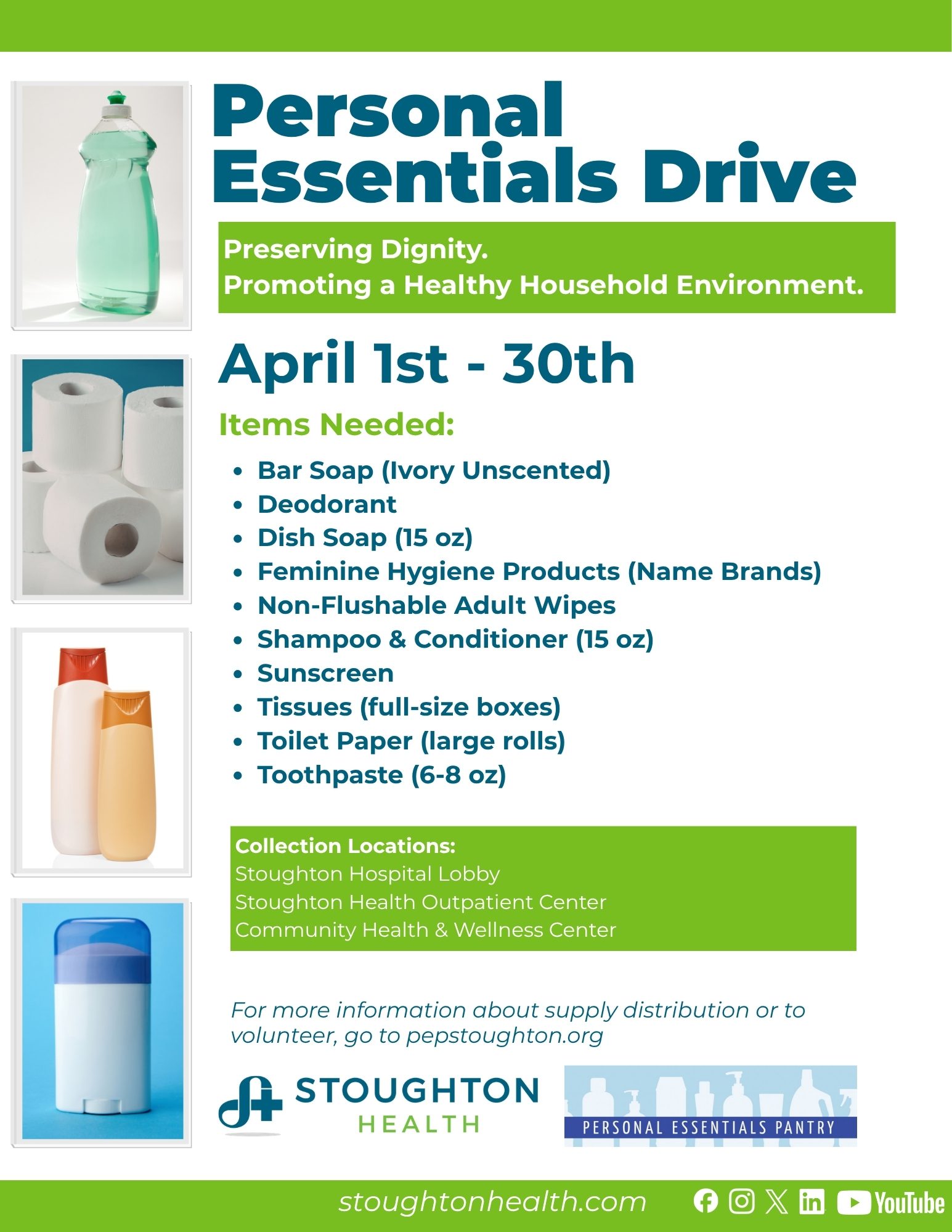 When you support Personal Essentials Pantry – Stoughton, you provide basic household essentials for families in need.